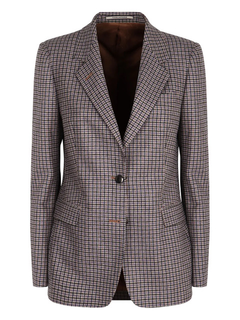 beige check pattern notched lapels button fastening front flap pockets buttoned cuffs