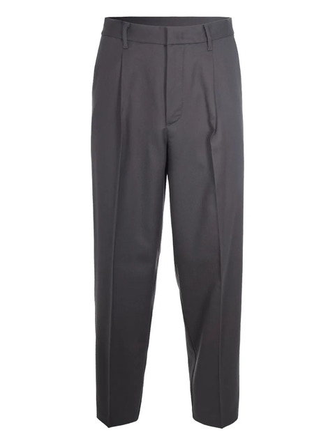 grey pleat detail belt loops back welt pockets concealed front fastening pressed crease