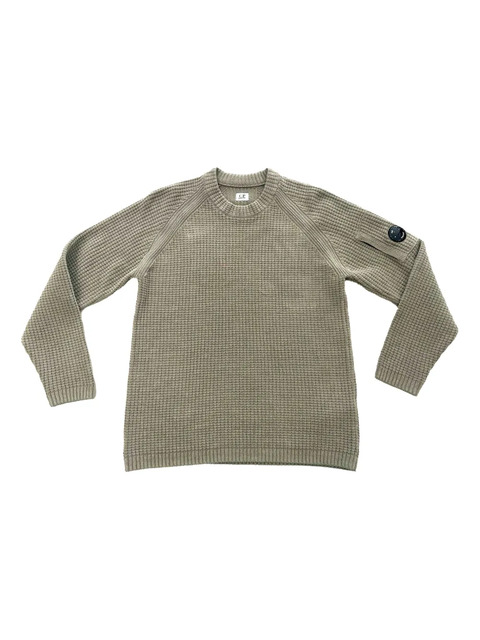 olive green waffle knit crew neck long sleeves C.P. Company suggests removing any detachable accessories before washing.