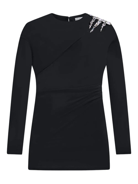 AREA crystal draped long-sleeve mini dress - 32204804 (LPN348308)