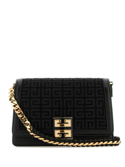black cotton blend signature 4G monogram embroidered canvas gold-tone logo plaque foldover top with magnetic fastening leather and chain-link shoulder strap adjustable detachable shoulder strap slip pocket to the rear leather lining internal logo stamp internal card slot partitioned compartment gold-tone hardware This piece comes complete with a protective dust bag.