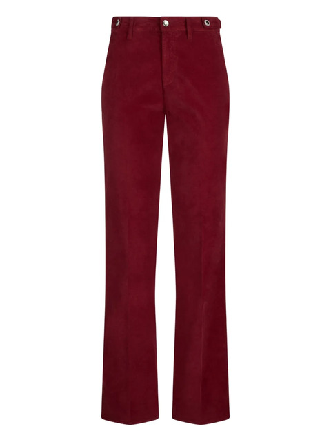 dark red velvet texture bootcut jewelled buttons pockets belt loops