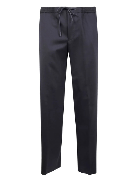 black elasticated waistband drawstring fastening patch pockets wool
