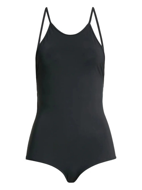 black stretch-jersey rear criss-cross straps sleeveless Be mindful to try on swimwear over your own garments.