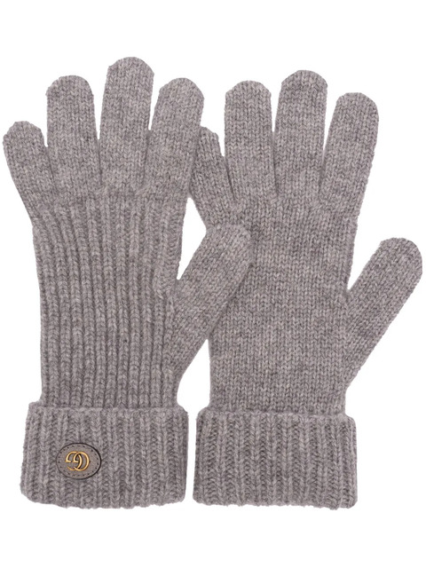light grey wool-cashmere blend chunky knit signature Double G logo slip-on style full-finger design ribbed cuffs