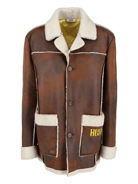 brown sheepskin effect two front patch pockets front button closure embroidered lettering Donald Duck patch Condition: EXCELLENT. This previously owned item is in near-perfect condition with no signs of damage or use.