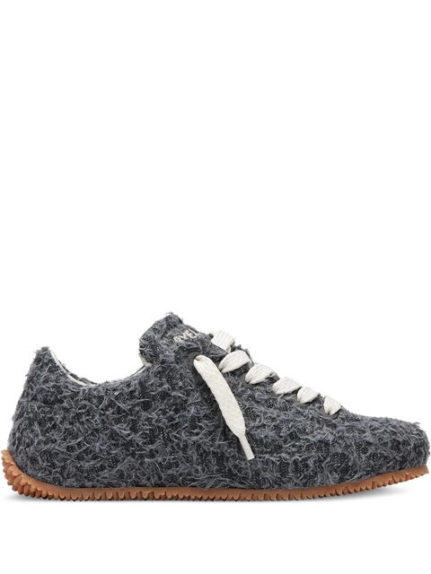 black fuzzy texture decorative laces rubber outsole logo detailing