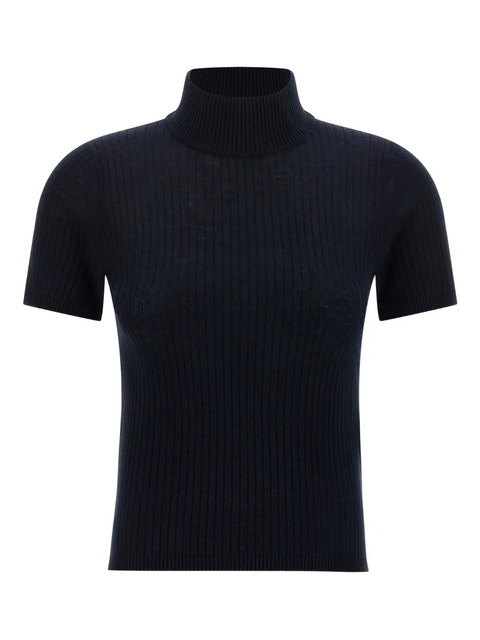 blue ribbed knit high neck short sleeves