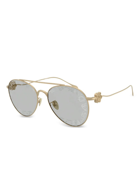 light gold floral detail pilot frame nose pads thin arms These glasses come with a protective case.