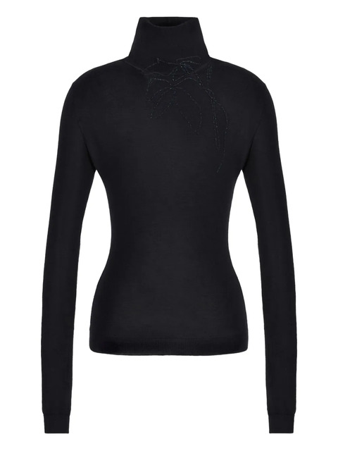 black roll neck long sleeves embroidered detail ribbed hem and cuffs