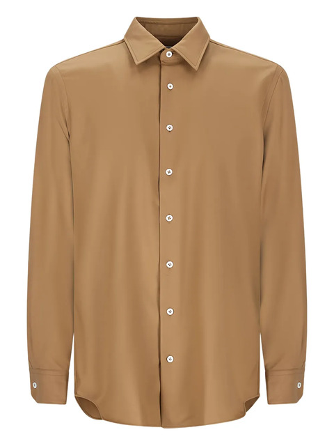 light brown button fastening long sleeves buttoned cuffs classic collar