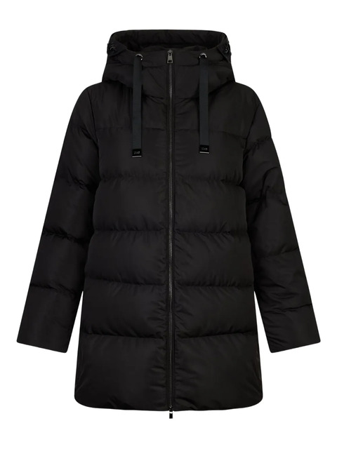 black quilted hood bejewelled embroidery drawstring two-way zip closure
