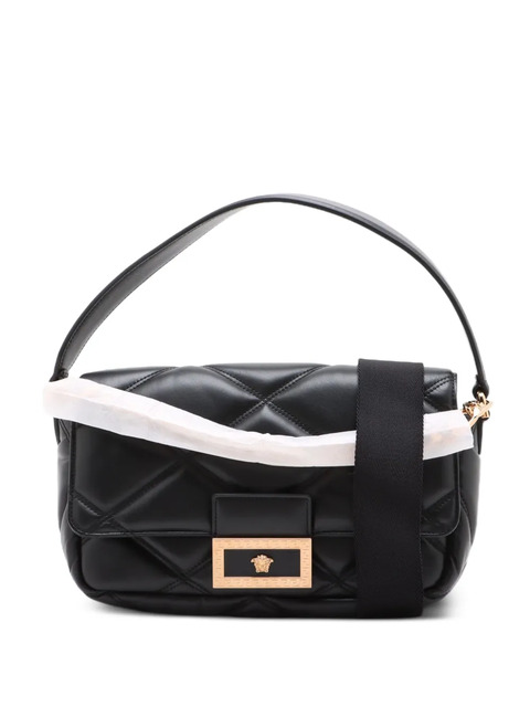 2020s black quilted gold-tone hardware top handle detachable shoulder strap Medusa plaque Condition: EXCELLENT. This previously owned item is in near-perfect condition with no signs of damage or use.