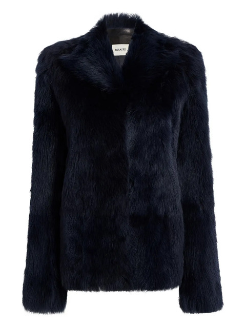dark blue lamb fur collared long sleeves straight hem concealed fastening