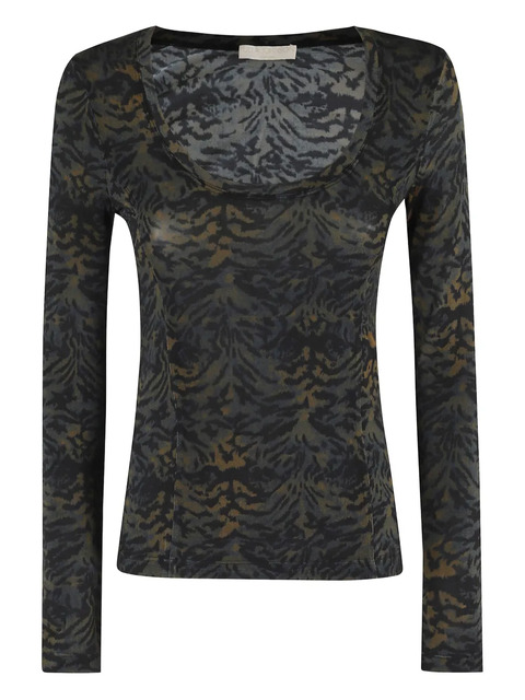 black animal-print long sleeves scoop neckline