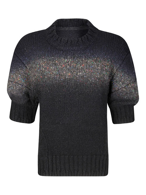 black knitted construction degradé effect balloon sleeves short sleeves ribbed knit