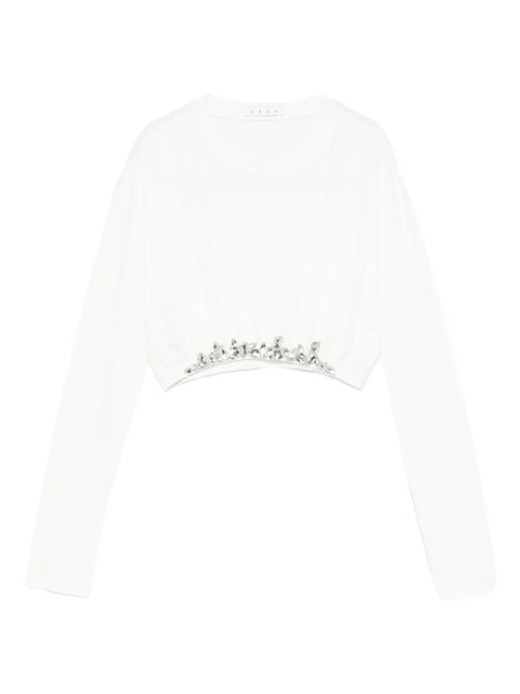 white crystal embellishment long sleeves round neck
