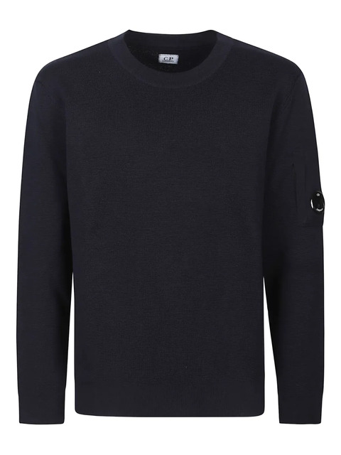 dark blue wool crew neck long sleeves signature lens pocket ribbed trims C.P. Company suggests removing any detachable accessories before washing.