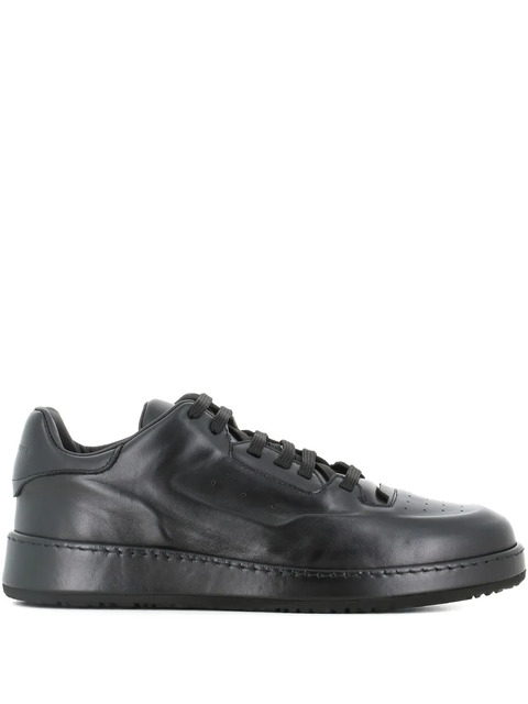 black leather perforated detailing front lace-up fastening flat rubber sole