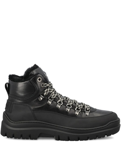 black leather front lace-up fastening round toe branded insole pull-tab at the heel rubber sole
