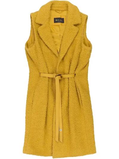 mustard yellow front tie fastening bouclé construction sleeveless