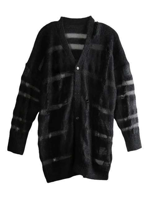 Yohji Yamamoto striped distressed cardigan - 32127493 (LPN349333)