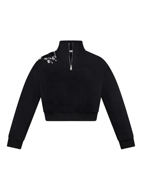 black crystal embellishment half zip fastening high neck long sleeves ribbed hem