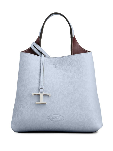 light blue leather grained texture debossed logo to the front logo charm single flat top handle detachable shoulder strap partitioned compartment silver-tone hardware