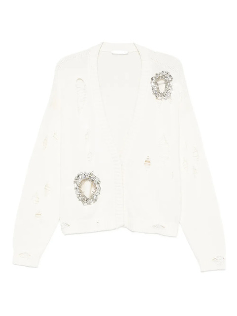 AREA crystal-embellished distressed-effect cardigan - 31980798 (LPN349653)