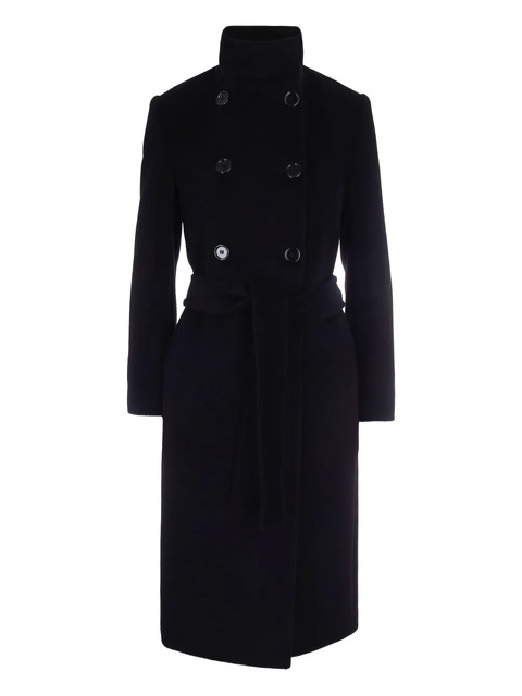 black wool double-breasted button fastening belt high neck