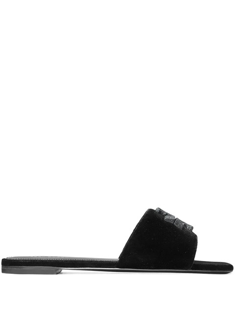 black velvet/nappa leather signature Double T motif logo embellishment slip-on style square toe branded insole flat sole