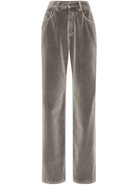 ash grey cotton logo patch to the rear front button fastening classic five pockets flared design long length