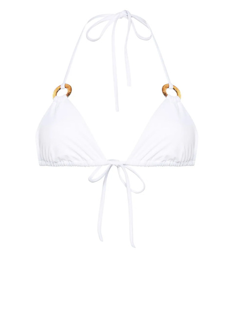 white stretch-design ring embellishment triangle cup halterneck tie fastening rear tie fastening Be mindful to try on swimwear over your own garments.