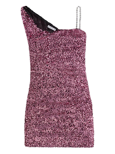 metallic rose sequin embellishment crystal strap one-shoulder design sleeveless mini length