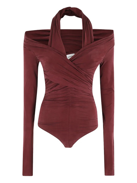 red draped detail long sleeves halterneck gathered detail Just a reminder that this piece must be tried on over your own garments.