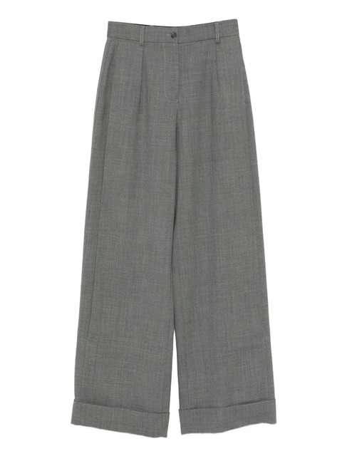 grey cuffed hem front pleats button fastening belt loops straight leg