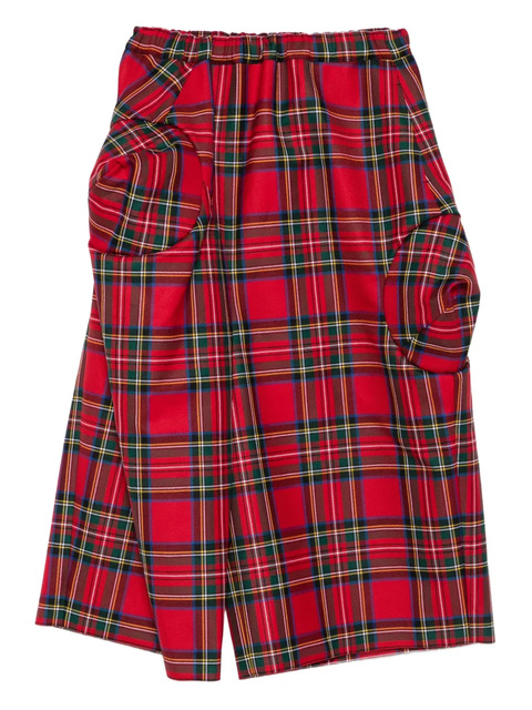 red tartan pattern elasticated waistband side pockets gathered detailing