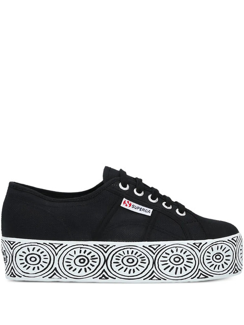 black canvas upper lace-up closure platform sole graphic print trim rubber sole