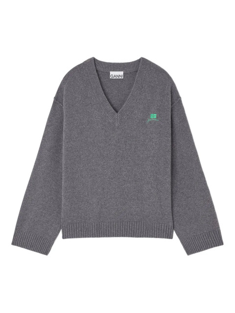 GANNI V-neck logo sweater - 31317290 (LPN350594)