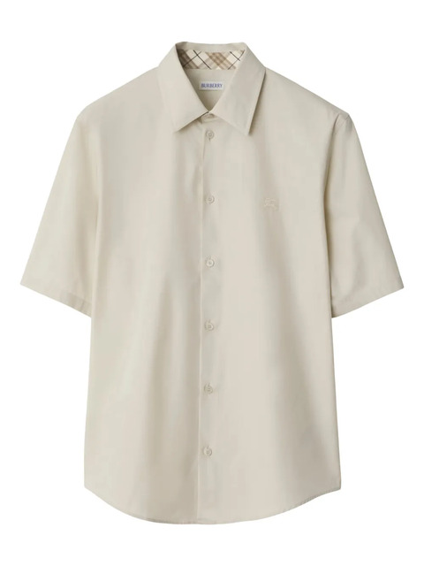 light beige front button fastening signature Equestrian Knight motif short sleeves curved hem