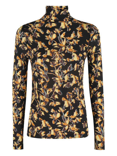 black floral-print patterned long sleeves high neck