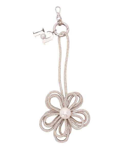 silver-tone crystal embellishment flower pendant lobster clasp fastening engraved logo