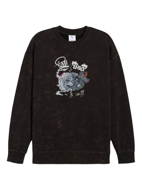 black graphic print crew neck long sleeved