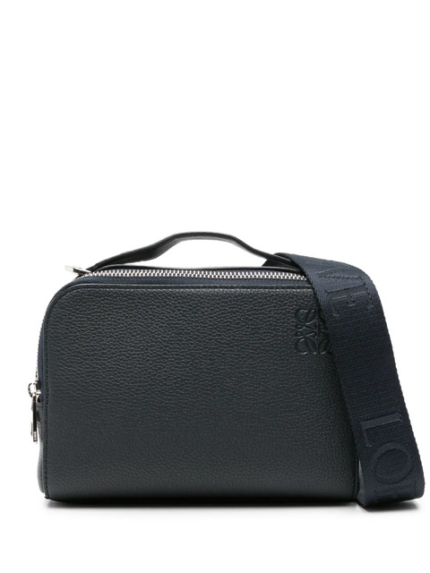 navy blue single top handle zip closure shoulder strap logo detail silver-tone hardware