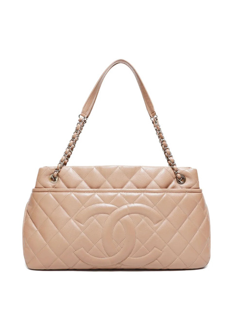 2013 beige Matelasse quilting chain-link detailing top handle signature interlocking CC Condition: GOOD. This previously owned and used item is in good condition with minimal signs of use. This may include fading of material or plating and scratches.