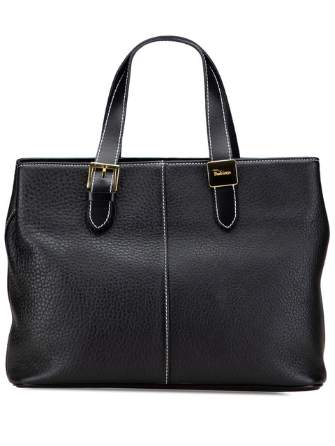 leather body flat leather handles open top with magnetic snap closure interior zip compartment interior zip and slip pockets black This item has no inclusions. Condition: GOOD. This previously owned and used item is in good condition with minimal signs of use. This may include fading of material or plating and scratches. Please refer to the photos on this product page for a detailed view of the item, including any damages declared.