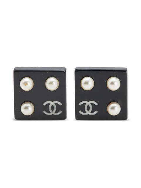 CHANEL Pre-Owned 2003 Square Acrylic and Faux Pearls Clip On Earrings costume earrings - 32265734 (LPN351318)