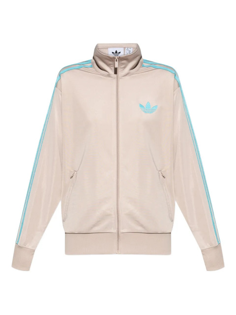 beige 3 stripes detail zip fastening high neck long sleeves embroidered logo