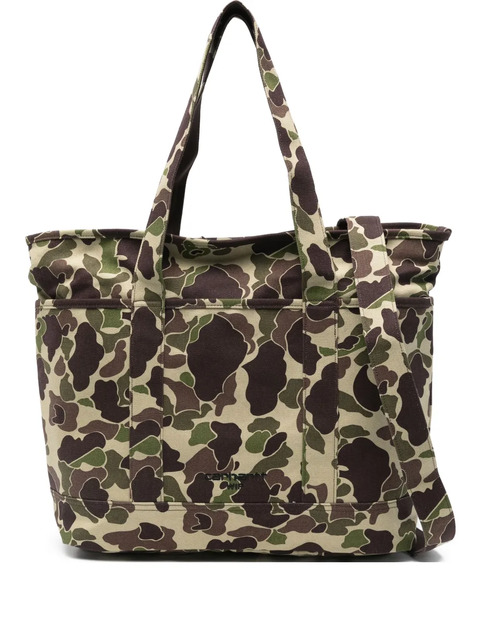 green/brown camouflage design twin handles adjustable strap logo embroidery