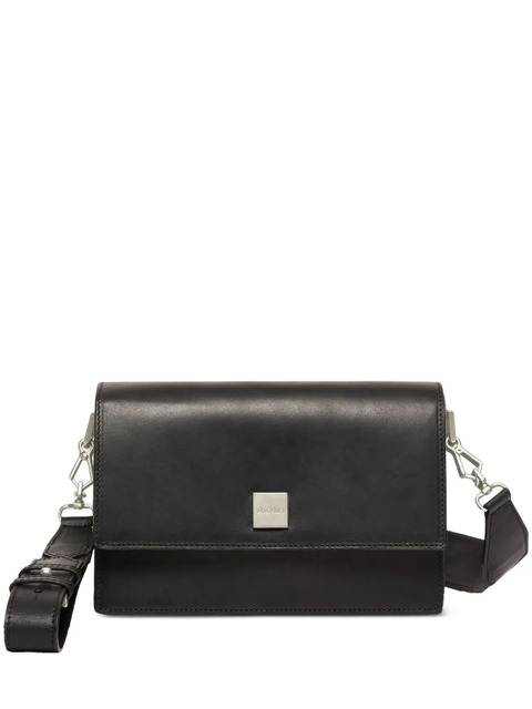 black leather silver-tone hardware front flap closure detachable shoulder strap internal zip pocket